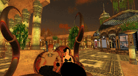 Free Swimsuit Event– Because we had to attend one event, and because I am interested in clothes (as anyone reading my blog will no doubtedly have noticed by now) I chose an event where they said they would be handing out free swimsuits. I should have gotten my cue from the number of participants in the event that it wasn’t the most popular around. When I teleported to the location, there was no one in sight. Noting two green blobs on my mini map, I flew over to a beach area, where I found a couple dancing and making out in the rushes (the woman was even making appropriate noises). I pretended to ignore them, but actually was very distracted (because of the noises).