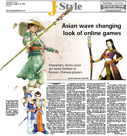 “Asian wave changing look of online games” (Aug. 11, 2004)