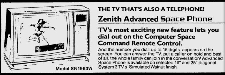 In 1980, Zenith launched Spacephone (Wikipedia link), a high–end television model that enabled users to talk on the telephone through their television set. Users could make phone calls with their remote control and watch television while talking, but the product was not successful and discontinued after a few years.