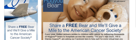 United Airlines has this great campaign where they send a plush toy bear to children with cancer. You can choose to donate your money or your miles to send a pair of […]